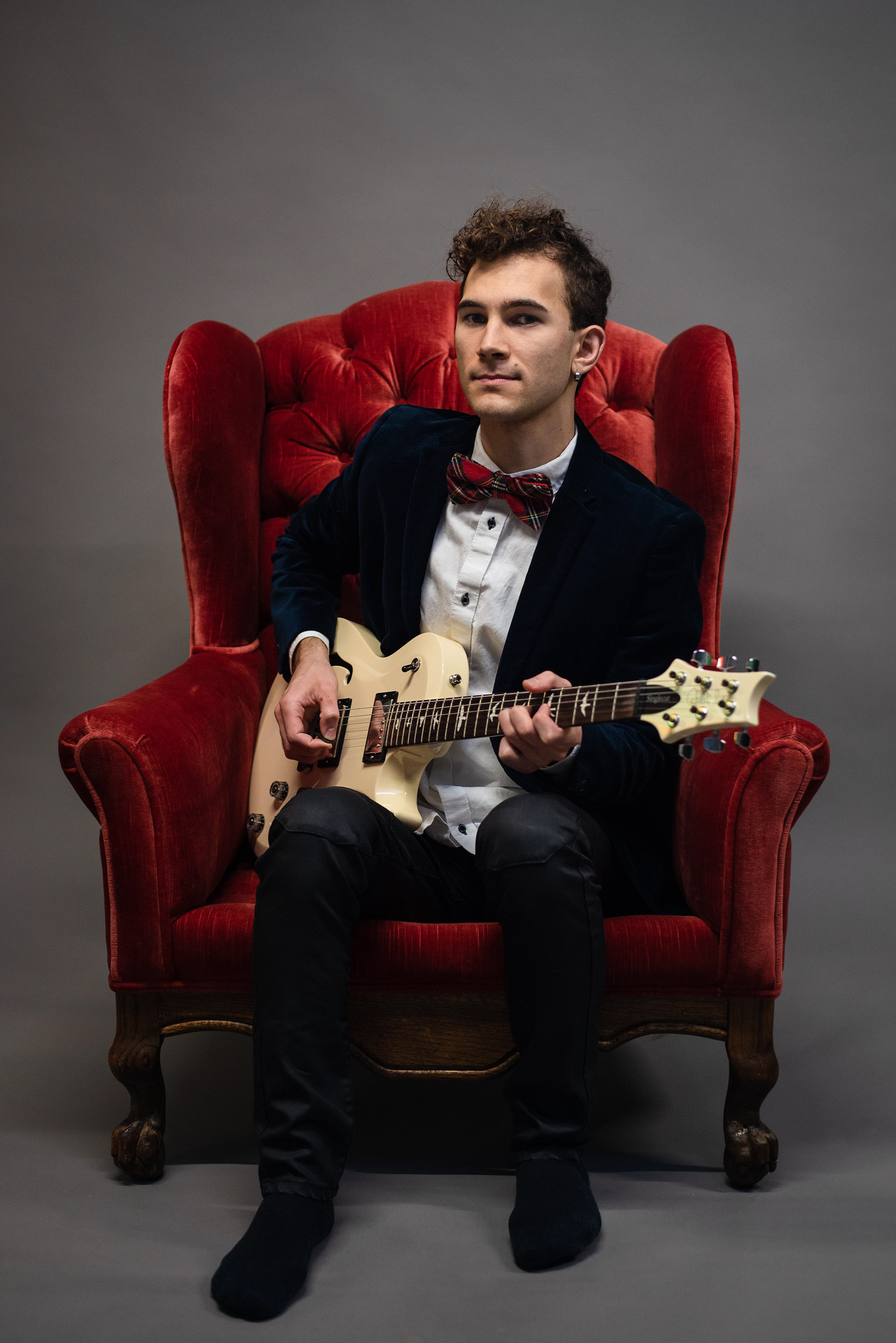 As a whole, the project contains diverse symbolism, starting with the red chair as a representation of my life and the people who have been in it. Similarly, each person either holds or wears something that represents a trait about them - for example, a musician holds their instrument, or photographers have their cameras. The cats of course are themselves because I cannot accurately represent my life without them. All images were photographed in my garage with a backdrop and two remote-triggered speed lights.
